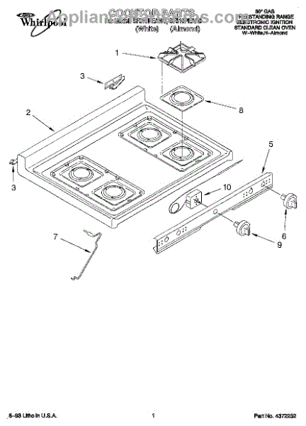 Parts for Whirlpool SF310PEAN0: 01 - Cooktop Parts