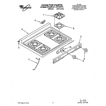 Parts for Whirlpool SF310PEYW1: 01 - Cooktop Parts