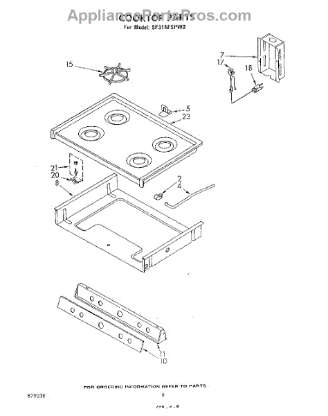 Parts for Whirlpool SF315ESPW0: 06 - Cooktop Parts