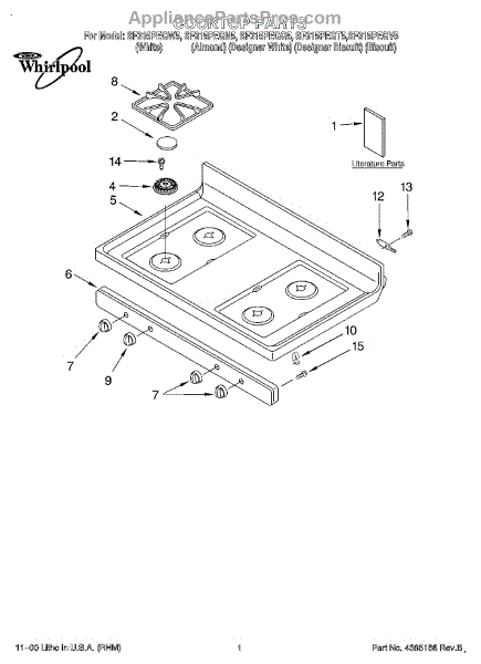 Parts for Whirlpool SF315PEGN5: 01 - Cooktop, Literature Parts