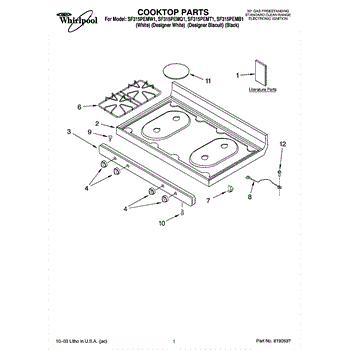 Parts for Whirlpool SF315PEMT1: 01 - Cooktop Parts
