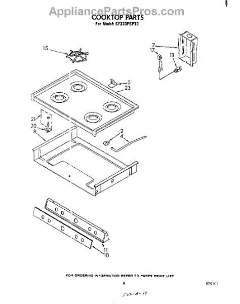Parts for Whirlpool SF333PSPT0: 06 - Cooktop Parts