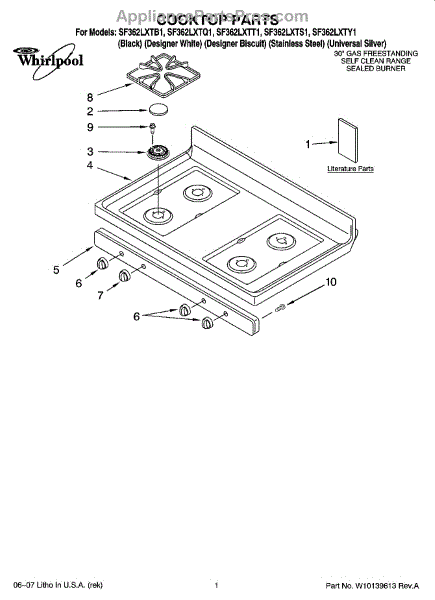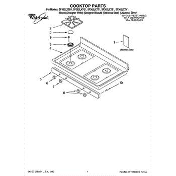 Parts for Whirlpool SF362LXTS1: 01 - Cooktop Parts