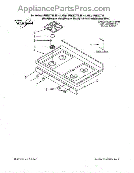 Parts for Whirlpool SF362LXTS2: Cooktop Parts