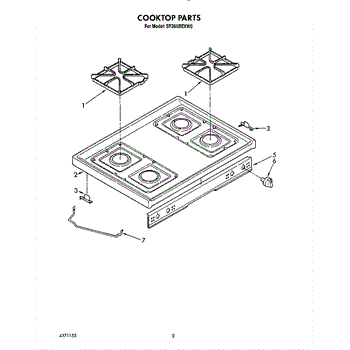 Parts for Whirlpool SF365BEXW0: 02 - Cooktop Parts