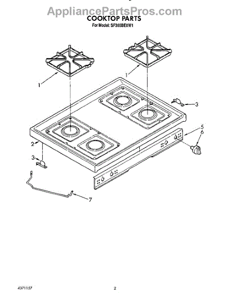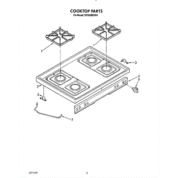 Parts for Whirlpool SF365BEXW1: 02 - Cooktop Parts