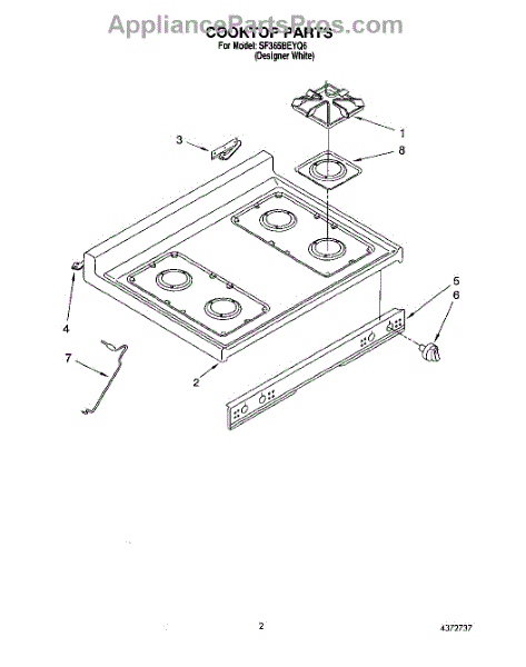 Parts for Whirlpool SF365BEYQ6: 02 - Cooktop Parts
