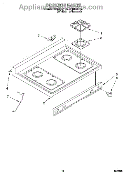 Parts for Whirlpool SF365BEYW4: 02 - Cooktop Parts