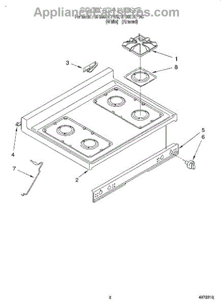 Parts for Whirlpool SF365BEYW5: 02 - Cooktop Parts