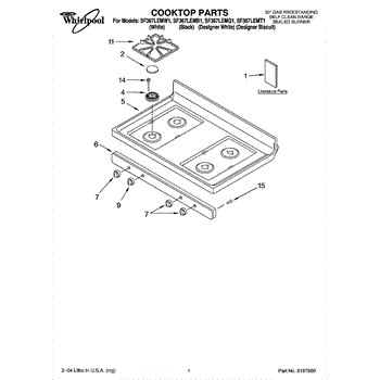 Parts for Whirlpool SF367LEMW1: 01 - Cooktop Parts