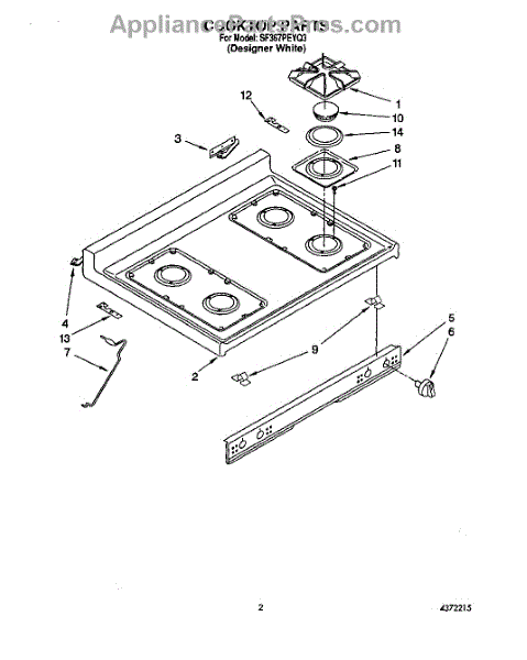 Parts for Whirlpool SF367PEYQ3: 02 - Cooktop Parts