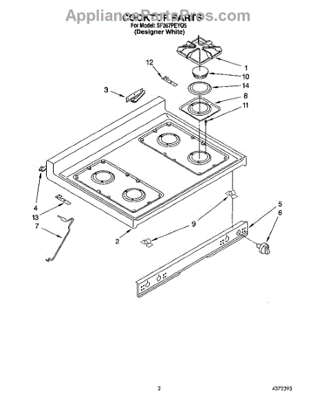 Parts for Whirlpool SF367PEYQ5: 02 - Cooktop Parts