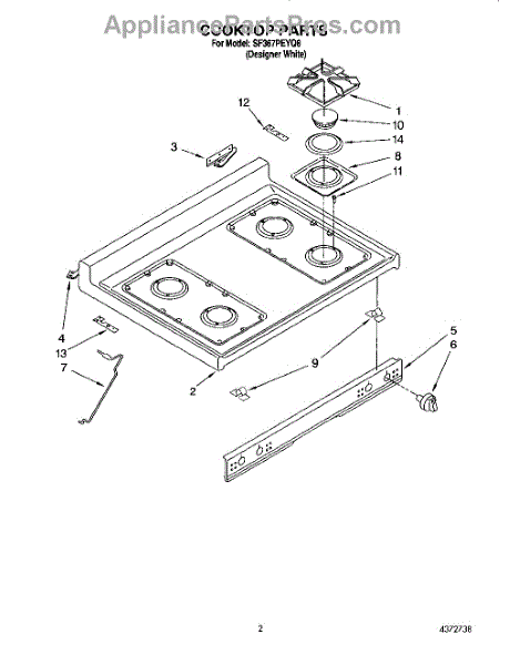 Parts for Whirlpool SF367PEYQ8: 02 - Cooktop Parts