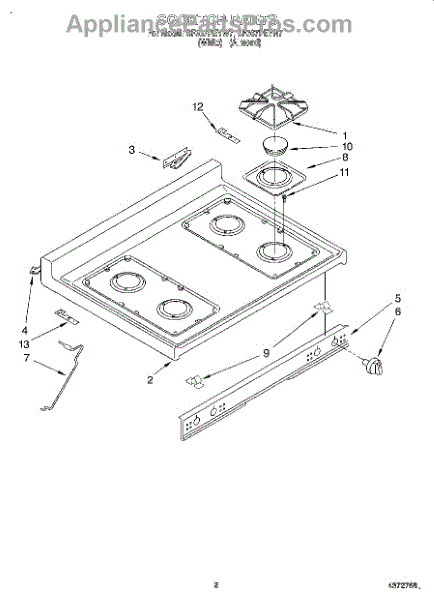 Parts for Whirlpool SF367PEYW7: 02 - Cooktop Parts