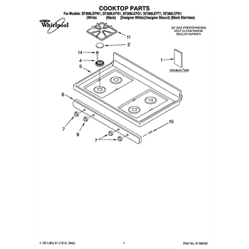 Parts for Whirlpool SF368LEPQ1: 01 - Cooktop Parts