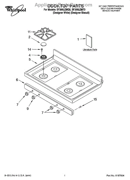 Parts for Whirlpool SF369LEMQ0: 01 - Cooktop Parts