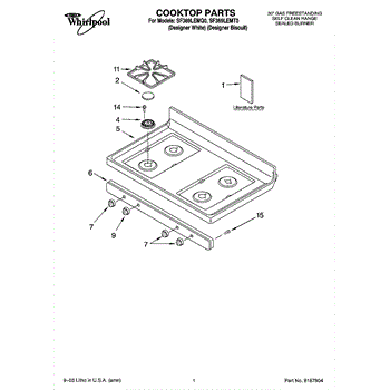 Parts for Whirlpool SF369LEMT0: 01 - Cooktop Parts