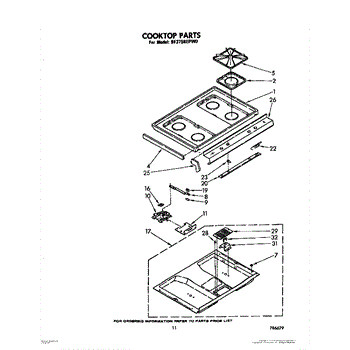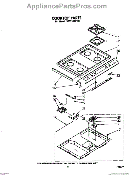 Parts for Whirlpool SF375BEPW0: 09 - Cooktop Parts