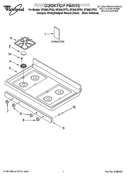 Parts for Whirlpool SF380LEPB3: 01 - Cooktop Parts