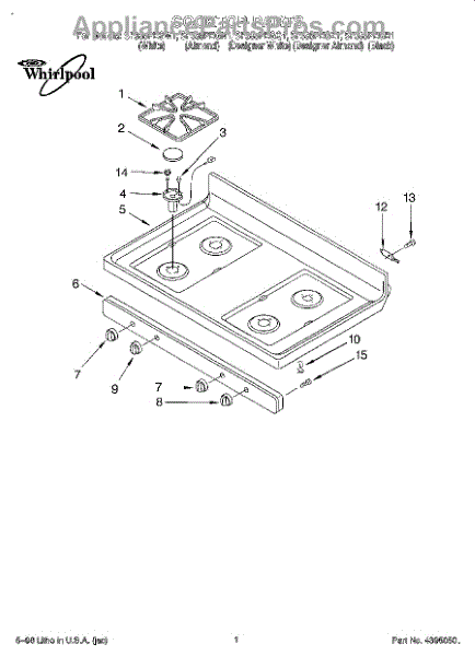 Parts for Whirlpool SF385PEGZ1: 01 - Cooktop Parts