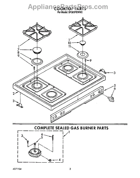 Parts for Whirlpool SF385PEWW2: 02 - Cooktop, Complete Sealed Gas Burner Parts