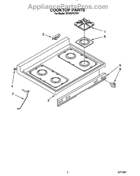 Parts for Whirlpool SF385PEYN1: 03 - Cooktop Parts