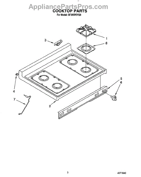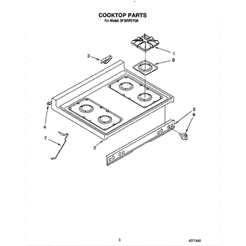 Parts for Whirlpool SF385PEYQ0: 03 - Cooktop Parts