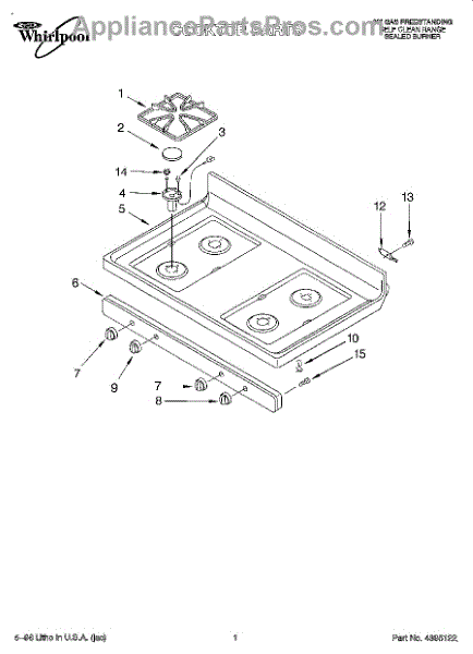 Parts for Whirlpool SF387LEGW0: 01 - Cooktop Parts