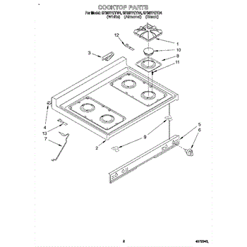 Parts for Whirlpool SF387PEYB4: 02 - Cooktop Parts