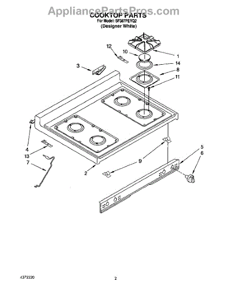 Parts for Whirlpool SF387PEYQ2: 02 - Cooktop Parts