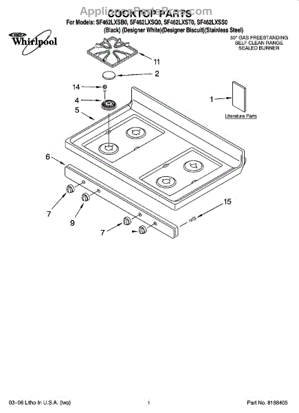 Parts for Whirlpool SF462LXST0: 01 - Cooktop Parts
