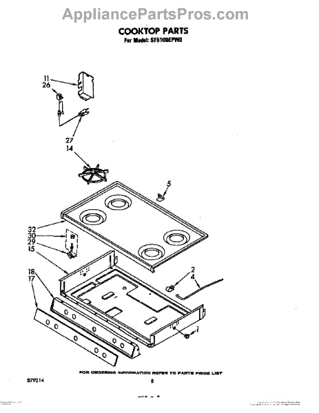 Parts for Whirlpool SF5100EPW0: 05 - Cooktop Parts