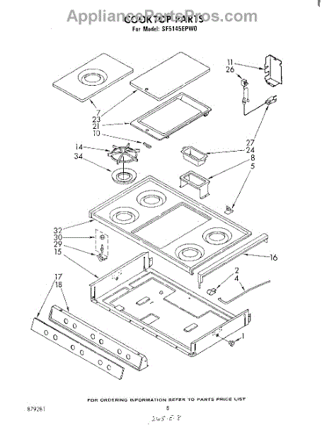 Parts for Whirlpool SF5145EPW0: 05 - Cooktop Parts