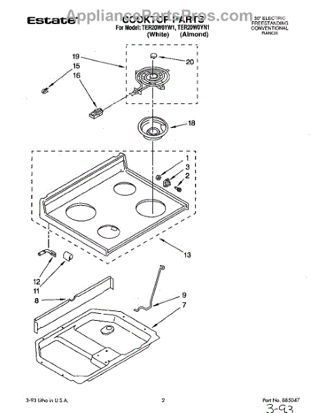 Parts for Whirlpool TER20W0YN1: 01 - Cooktop Parts