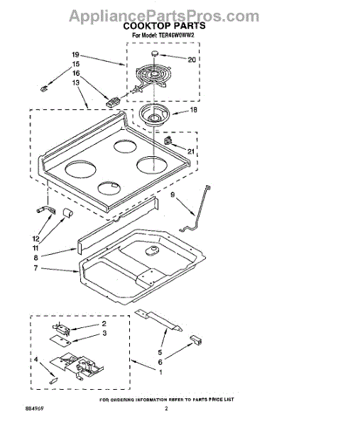 Parts for Whirlpool TER46W0WN2: 02 - Cooktop Parts