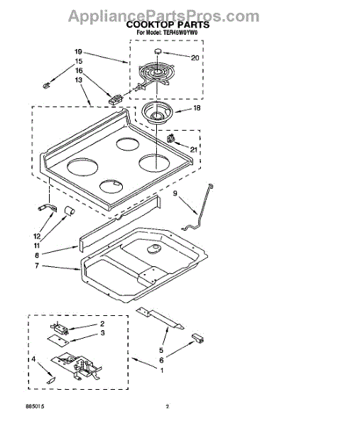 Parts for Whirlpool TER46W0YW0: 02 - Cooktop Parts