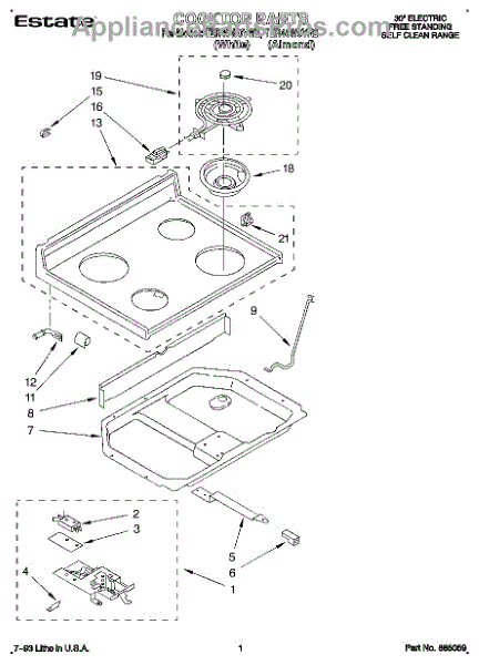 Parts for Whirlpool TER46W0YW2: 01 - Cooktop Parts