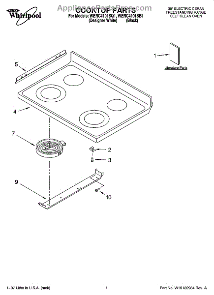 Parts for Whirlpool WERC4101SB1: 01 - Cooktop Parts