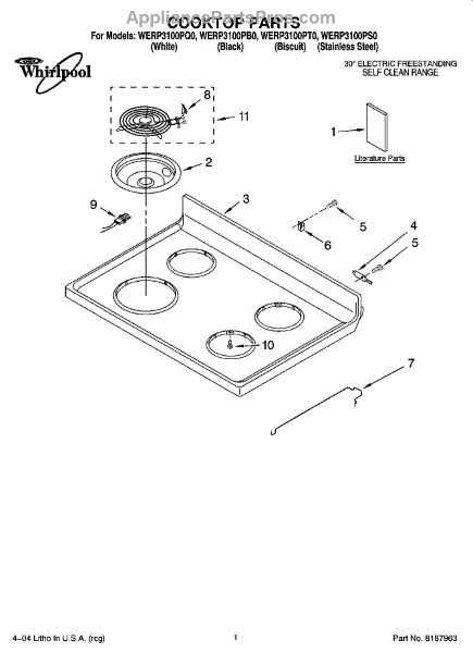 Parts for Whirlpool WERP3100PQ0: 01 - Cooktop Parts