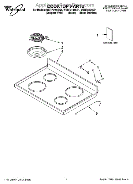 Note: For 6-inch drip bowl order W10196406RW