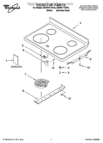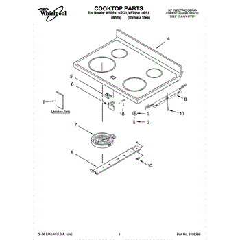 Parts for Whirlpool WERP4110PQ3: 01 - Cooktop Parts
