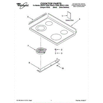 Parts for Whirlpool WERP4110SB0: 01 - Cooktop Parts