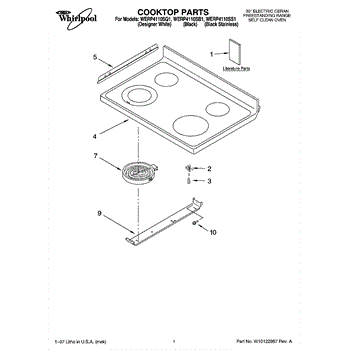 Parts for Whirlpool WERP4110SB1: 01 - Cooktop Parts