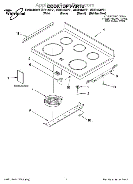 Parts for Whirlpool WERP4120PT1: 01 - Cooktop Parts