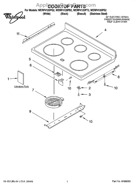 Parts for Whirlpool WERP4120PT2: 01 - Cooktop Parts