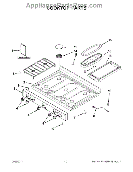 This burner head sits on the cooktop and channels gas through precision ports to produce an even flame. Replacing a worn or clogged head restores quick ignition and consistent heat across the burner.