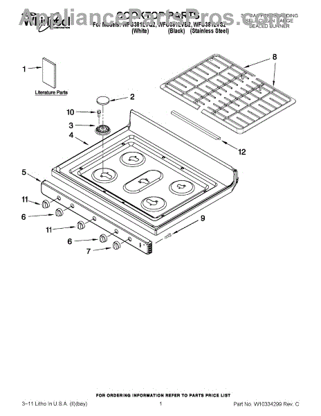 The Burner Cap Kit is an OEM replacement part for Whirlpool ranges. It is a kit that contains replacement burner caps for the range's gas burners. These burner caps play a vital role in distributing heat evenly across pots and pans placed on the gas burners. Color: Grey. Kit includes five burner caps. For the burner cap kit in black use part number WPW10183374. Causes of a bad burner cap kit include wear and tear over time from heat exposure, accidental damage from pots and pans, or issues with the mounting hardware that secures the caps. Symptoms of bad burner caps can include: