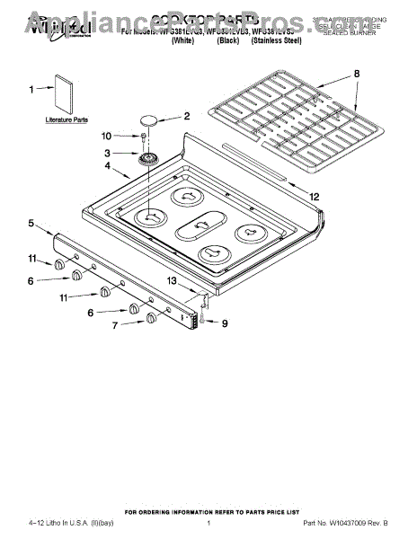 The Burner Cap Kit is an OEM replacement part for Whirlpool ranges. It is a kit that contains replacement burner caps for the range's gas burners. These burner caps play a vital role in distributing heat evenly across pots and pans placed on the gas burners. Color: Grey. Kit includes five burner caps. For the burner cap kit in black use part number WPW10183374. Causes of a bad burner cap kit include wear and tear over time from heat exposure, accidental damage from pots and pans, or issues with the mounting hardware that secures the caps. Symptoms of bad burner caps can include:
