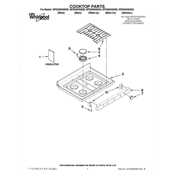 Parts for Whirlpool WFG540H0AS0: 01 - Cooktop Parts