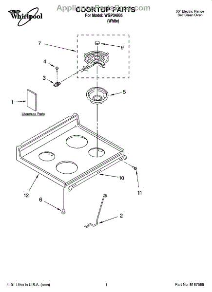 Parts for Whirlpool WGP34805: 01 - Cooktop Parts